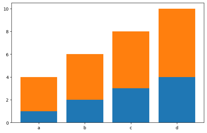 plt.bar(x, y2, bottom = y1)