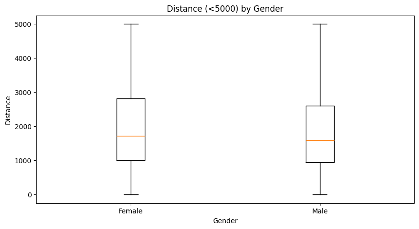 plt.title("Distance (<5000) by Gender")