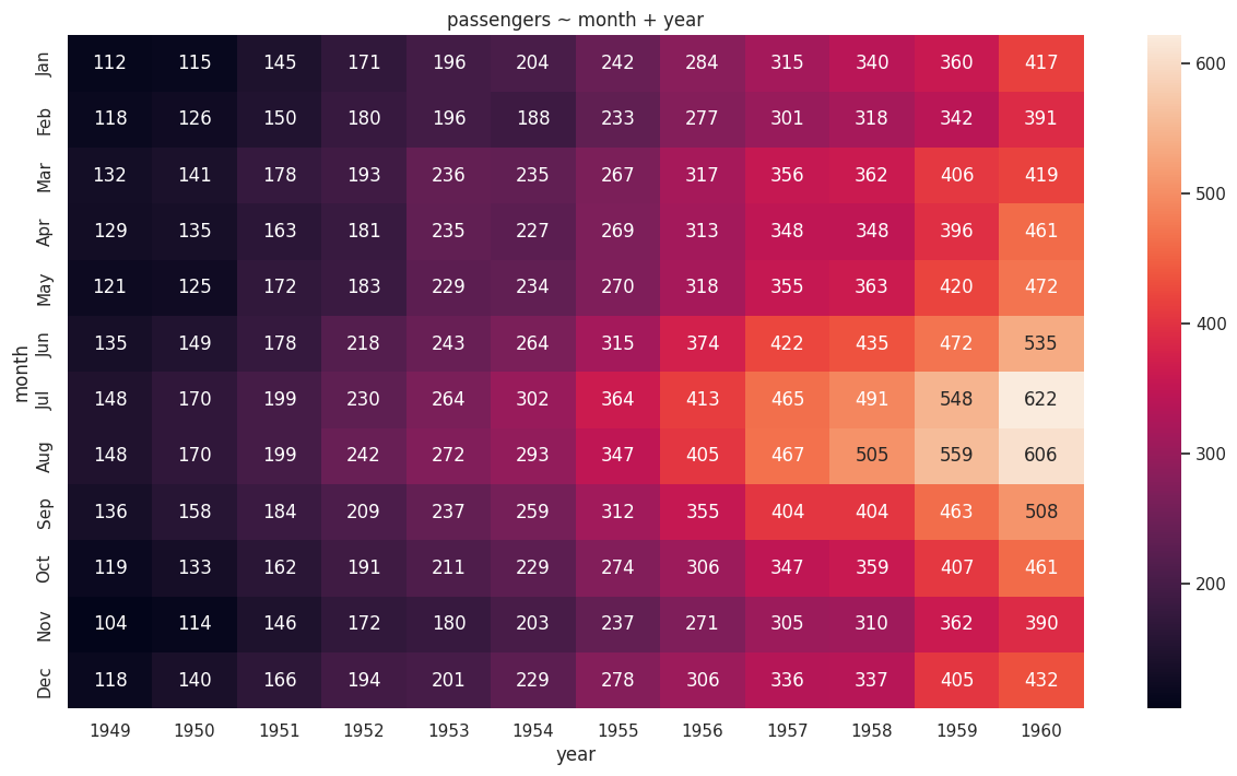 plt.title('passengers ~ month + year')