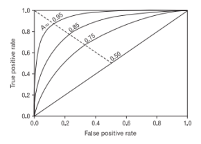 - 따라서, 좋은 모델은 y축으로 치우친(왼쪽 위로 볼록한) 그래프를 가짐.